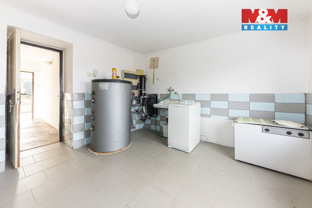 Vytápění je řešeno moderním tepelným čerpadlem, voda pochází z vlastní studny a odpad je napojen na novou tlakovou kanalizaci. Plastová okna dále přispívají k nízkým nákladům na energie.