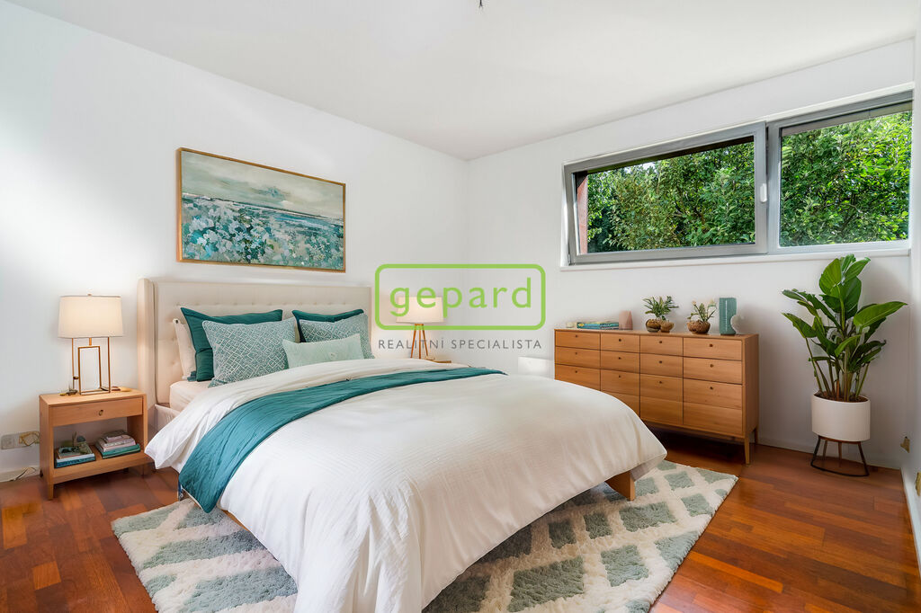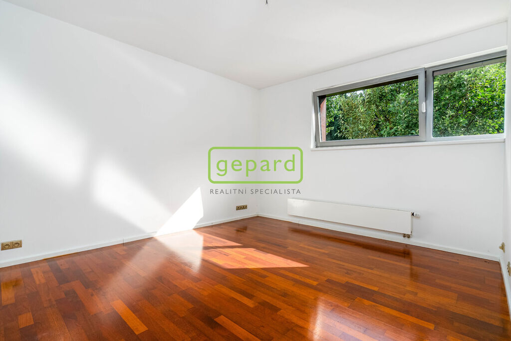 Z hlediska nadstandardního vybavení domu jsou například podlahy, schodiště i obklady dvou krbů jsou ze špičkové velkoformátové dlažby Iris Ceramica. Samostatný byt v přízemí má v obývacím pokoji a ložnici dřevěné parkety.