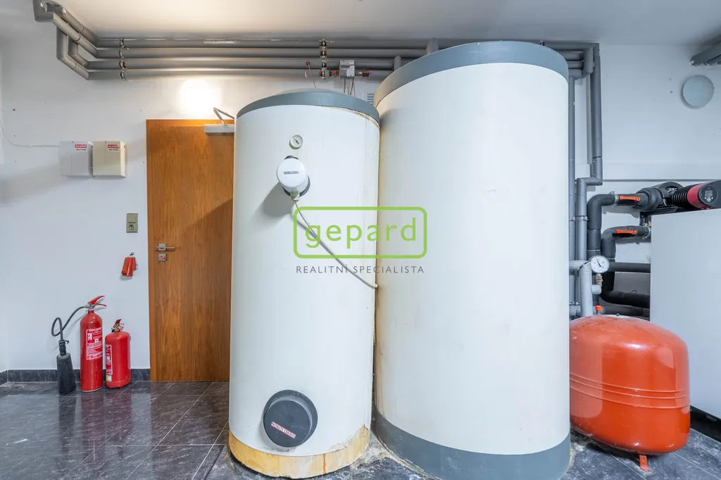 Vytápění zajišťují dvě tepelná čerpadla země-voda (4 hlubinné vrty) Stiebel Eltron, Na střeše domu je fotovoltaická elektrárna.
