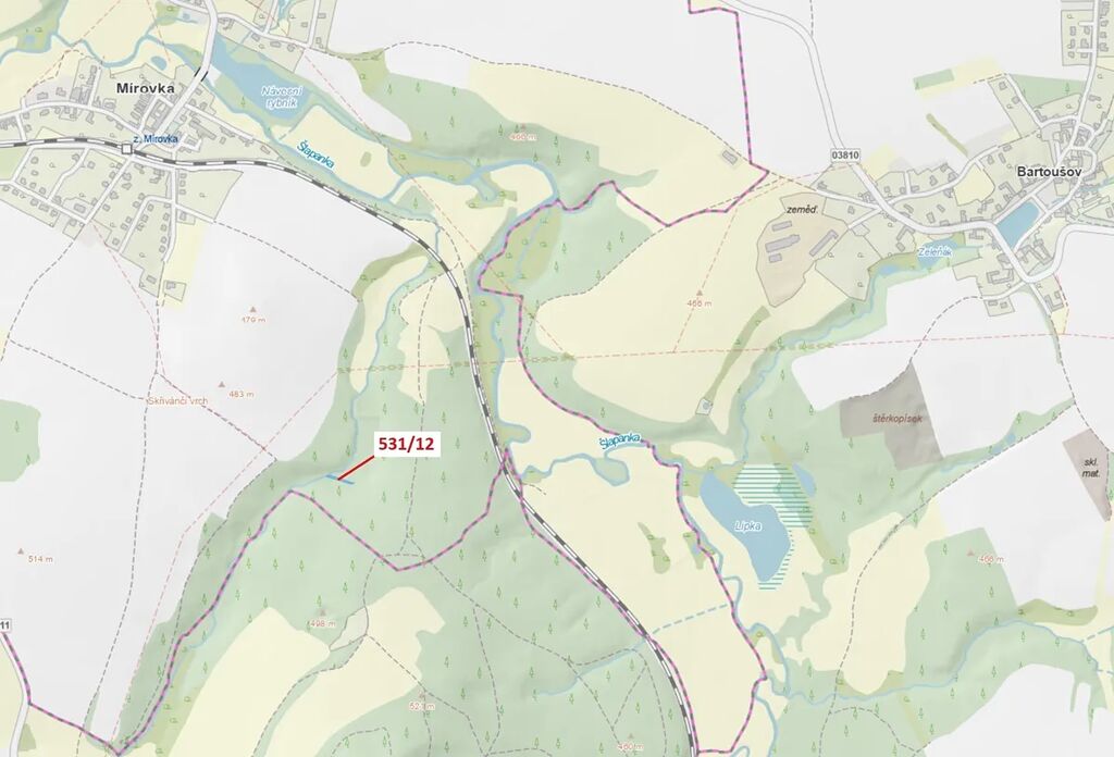 Lesní pozemek o výměře 281 m2, parcelní číslo 531/12, podíl 1/1, katastrální území Mírovka, obec Havlíčkův Brod, obec s rozšířenou působností Havlíčkův Brod, okres Havlíčkův Brod, Kraj Vysočina.