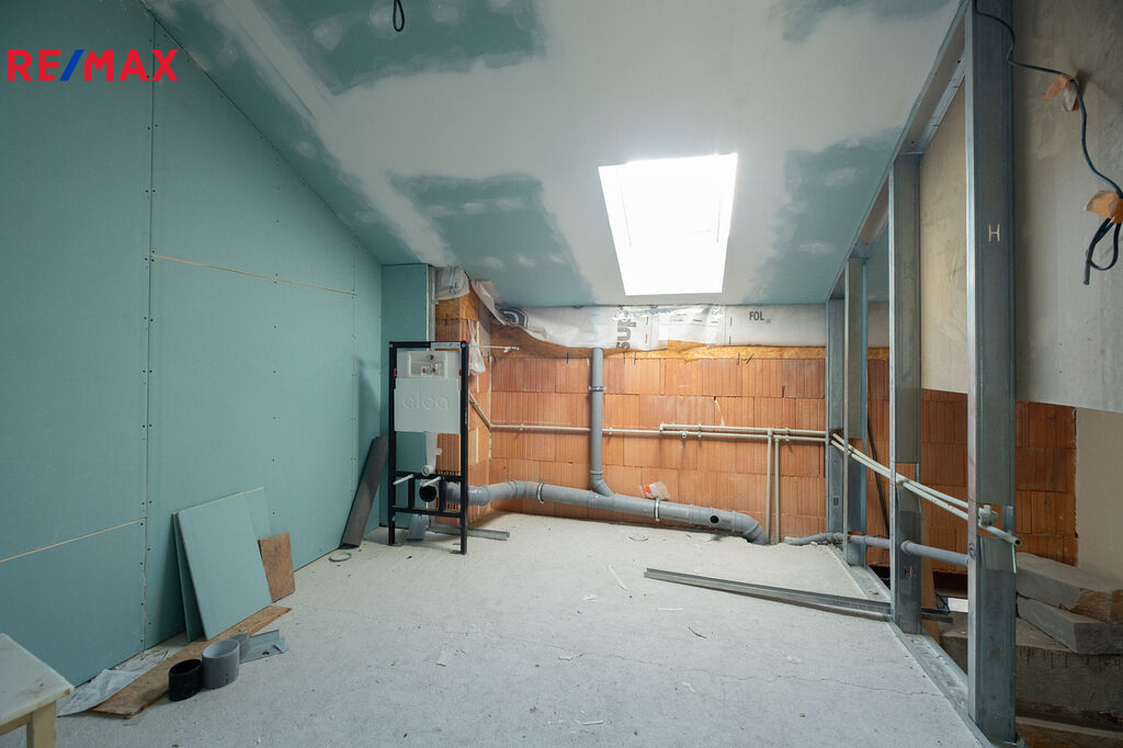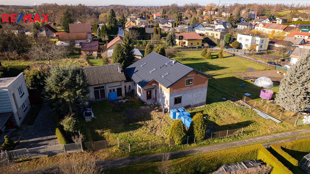 Láká Vás bydlení v rodinném domě, ale odrazuje Vás zdlouhavé vyřizování na úřadech a spousta problémů předtím, než se vůbec můžete do stavby pustit? Pokud ano, tato nabídka pro Vás může být to pravé. Tento rozestavěný dům je možné dostavět a připravit si tak bydlení podle vlastních představ v klidné a příjemné lokalitě nedaleko centra Dětmarovic. Nabízíme k prodeji dvoupodlažní rodinný dům o dispozici 5+kk s pozemkem o velikosti 840m². Pozemek je rovinatý a oplocený. Dům stojí na základech původního domu, ze kterého byly ponechány obvodové a vnitřní zdi z pálených cihel. Vrchní patro včetně střechy a stropu bylo kompletně odstraněno. Je zde postaven nový železobetonový věnec a stropní konstrukce z ocelových nosníků. Nová sedlová střecha je s plechovou krytinou. V domě jsou plastová okna s trojskly. Dispozičně je dům řešen prostornou kuchyní s jídelnou, obývacím pokojem, ložnicí, koupelnou, WC a technickým zázemím v 1. NP. V 2. nadzemním podlaží se nachází dva prostorné pokoje, šatna s koupelnou s WC. V druhém NP jsou již vybudovány sádrokartonové příčky, stropy a příprava na podlahové vytápění. První NP je připraveno na pokládku tvarovek iglú a následně podlahového topení. Vytápění bude v domě dle projektu zajišťovat tepelné čerpadlo vzduch-voda. Odpady jsou nyní řešeny tříkomorovým septikem. Do budoucna se počítá s napojením na kanalizaci, která by měla být vybudována v obci Dětmarovice jako součást IV. etapy. Dům je připojen na vodovodní řád a plyn je u hranice pozemku. Dům je částečně podsklepený (22m²). U domu jsou vybudovány dvě garáže a dílna, které jsou v původním stavu a poskytují dostatek prostoru pro parkování, uskladnění zahradní techniky atd. Obec Dětmarovice nabízí veškerou občanskou vybavenost, mateřskou školu, základní školu (1-9 třída), poštu, lékárnu, obchody, restaurace a dobré spojení s Karvinou, Bohumínem a Ostravou.
