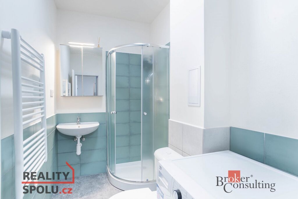 Byt má novou koupelnu se sprchovým koutem a WC.