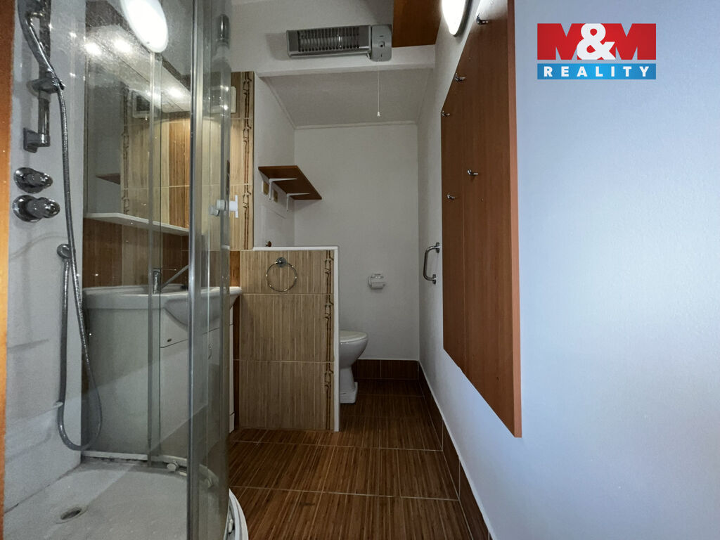 Dispozice bytu zahrnuje průchozí obývací pokoj, ze kterého je vstup do zasklené lodžie, kuchyň, neprůchozí ložnici, koupelnu s WC a oddělenou šatnu. Vybavení zde zůstává. Nájem je 12.500,- Kč, kauce 25.000,- Kč a provize RK ve výši jednoho nájmu. Energie nejsou součástí nájemného a jsou ve výši 3.500,- Kč.