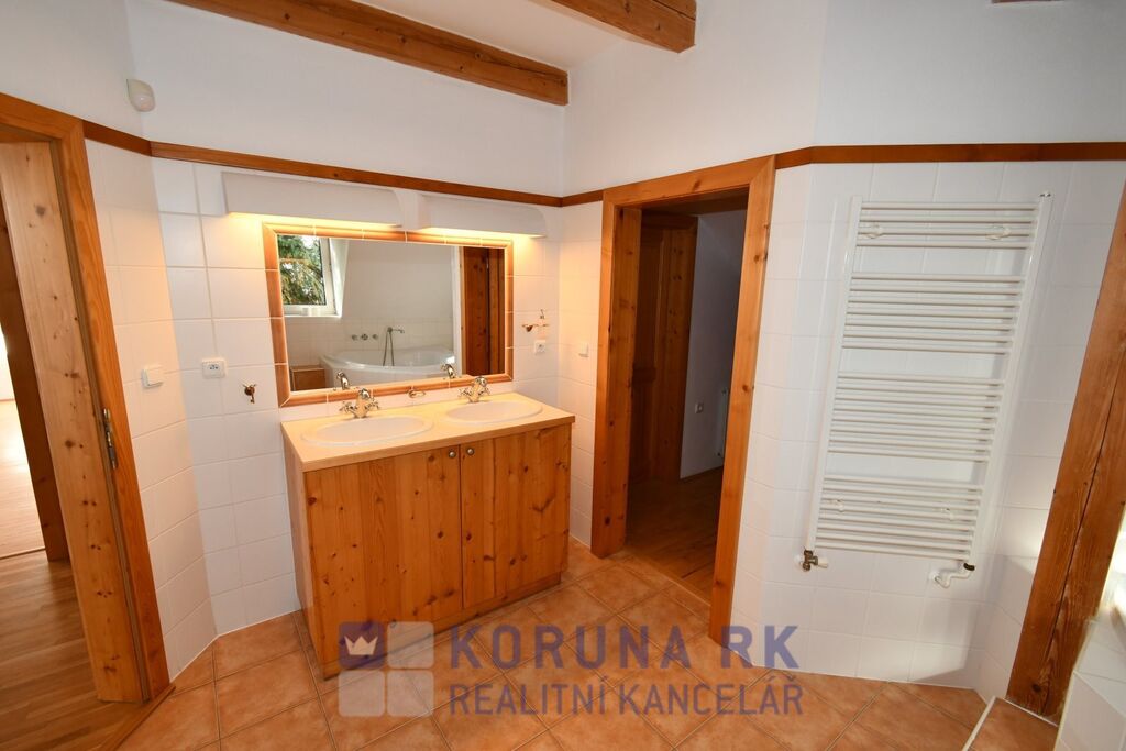 Jedná se o přízemní rodinný dům s provedenou vestavbou podkroví na nádherném vyvýšeném místě s částečným výhledem na Třeboňskou pánev s bytem 4+kk a ateliérem s vlastním sociálním zázemím a kuchyní, který je též samostatně přístupný a je možné jej užívat odděleně.