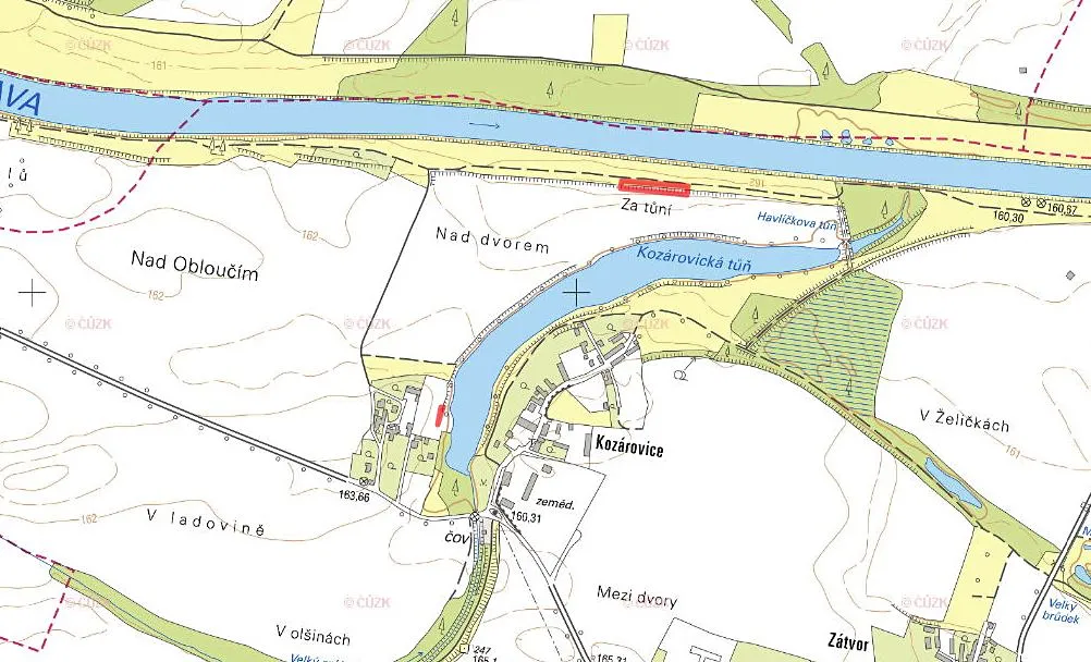 Parcela číslo 317 severně od obce v blízkosti břehu Vltavy je zastavěná plocha označená jako vodní dílo. V územním plánu obce je vedena jako oblast ochranné a izolační zeleně. Její výměra je 1 731 m2. Dle databáze LPIS je částečně užívána jako orná půda.
