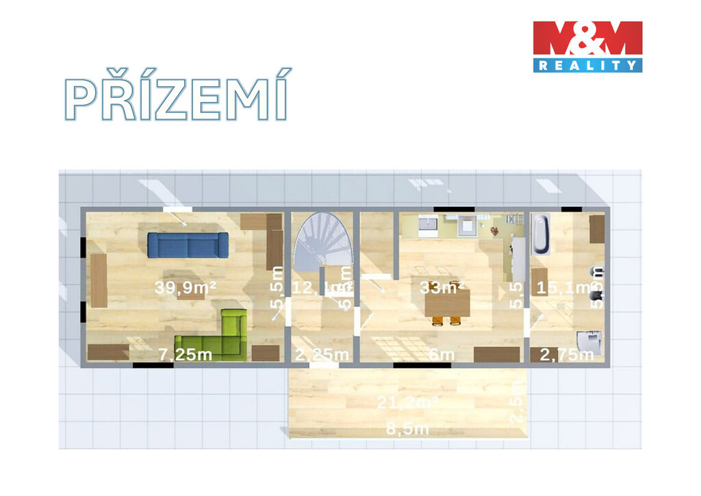 Nabízíme k prodeji kouzelný rodinný dům v klidné části obce Kladruby nad Labem, místní části Kolesa. Tento dvoupodlažní dům po rekonstrukci o dispozici 5+1 je ideální volbou pro ty, kteří hledají klidné bydlení v krásné krajině. V přízemí se nachází velký obývací pokoj, prostorná kuchyně se spižírnou a jídelním koutem, koupelna s WC, bidetem a komora. Z jídelny vedou francouzská okna na zastřešenou terasu na SV, zatímco z obývacího pokoje je přístup na zahradu na JZ. V prvním patře jsou čtyři oddělené pokoje, WC a velká chodba. Dům je vytápěn plynovým kotlem s podlahovým topením v přízemí a radiátory v patře. K domu patří rozlehlá zahrada s předzahrádkou, terasa a přístavba skladu/dřevníku. Celková plocha pozemku je 1525 m², užitná plocha domu činí 200 m². Připojení na elektřinu, vodovod, vlastní studna a septik zajišťují komfortní bydlení s dobrou dostupností do Prahy, Kolína, Pardubic a Hradce Králové.