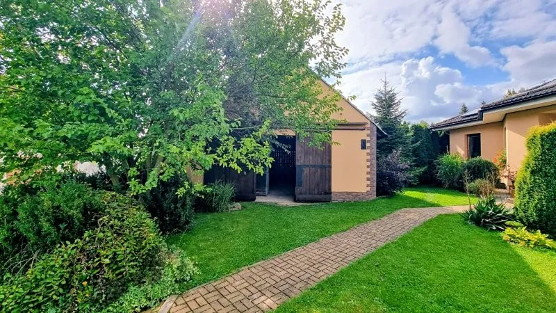 686 Prodej krátkodobě užívaného prostorného rodinného domu 4+1 s prostornou stodolou a zahradou v klidné lokalitě městyse Stařeč kolaudovaného v roce 2009 vzdáleného cca 2 km od Třebíče. V přízemí je prostorné zádveří ( 6,2 m2 ), hala ( 9,1 m2 ) v současnosti propojená s kuchyní ( 12,1 m2 ) a s obývacím pokojem ( 35,6 m2 ), dále pak tři ložnice ( 11,5 m2, 8,2 m2 a 13,8 m2 ), spíž ( 1,7 m2 ), WC ( 2,6 m2 ), koupelna s WC ( 6,5 m2 ). Na dům navazuje z větší části zastřešená terasa ( 33 m2 ), z jedné poloviny podsklepená velká stodola ( 100 m2 ), zahrada ( 1.039 m2 ) a parkovací plocha. V podkroví je prostorná půda. Dům je vybaven fotovoltaickými články s baterií na 9,96 kW a postaven je z bloků POROTHERM o síle 44 cm. Sítě: elektřina, obecní vodovod a kanalizace, plyn je v dosahu cca 35 m. Topení je řešeno převážně krbovou vložkou s možností vytápění elektrokotlem s radiátory, ohřev vody elektrickým boilerem. Aktuální roční spotřeba elektřiny v domě včetně elektrického topení a ohřevu vody je 34.000,- Kč. Zastavěná plocha 160 m2, užitná plocha cca 140 m2, stodola 100 m2. Pozemky celkem o výměře 1.299 m2. PENB D. Volný IHNED.