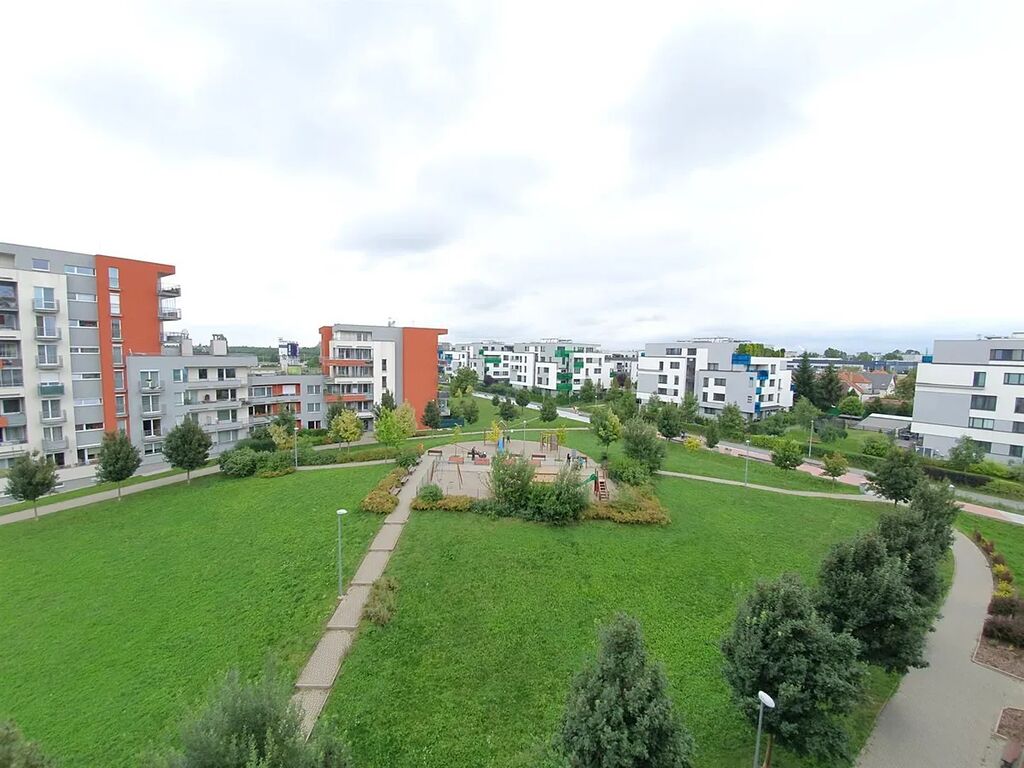Pěkný světlý a tichý byt v novostavbě s velkou lodžií a garážovým stáním 1+kk 42 m2, Praha 9, Letňany, ul. Pavla Beneše. Byt se nachází se 4. patře residenční budovy s výtahem.