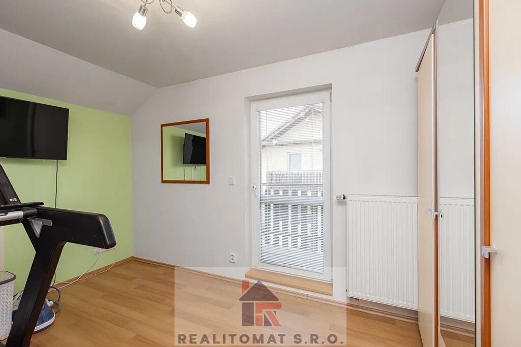 2. nadzemní podlaží: Tři prostorné pokoje a koupelna s WC. Z koupelny a jednoho z pokojů je přístup na balkon. Koupelna je vybavena přípojkou na pračku a technickým zázemím pro vytápění domu a ohřev vody (elektrokotel a elektrický bojler).
