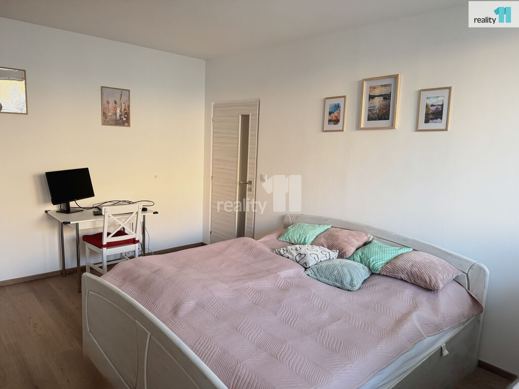 Kuchyně, obývací pokoj, pokoj, ložnice se vstupem na lodžii o výměře 5m², chodba se vstupem do šatny, samostatné WC a koupelna se dvěma umyvadly a vanou. V mezipatře je k dispozici také komora o výměře 1,5m².