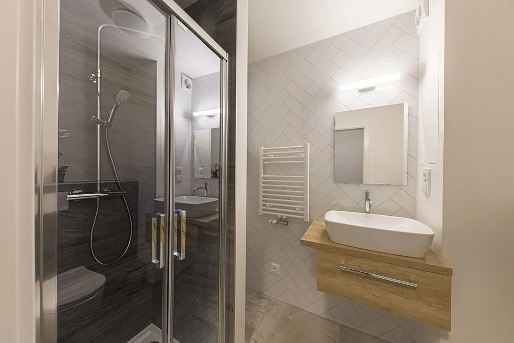 - koupelna se sprchovým koutem, WC a umyvadlem