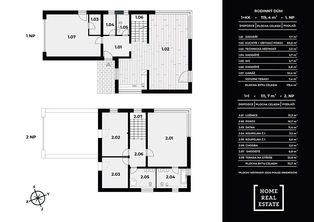 2. nadzemní podlaží – 111,7 m²