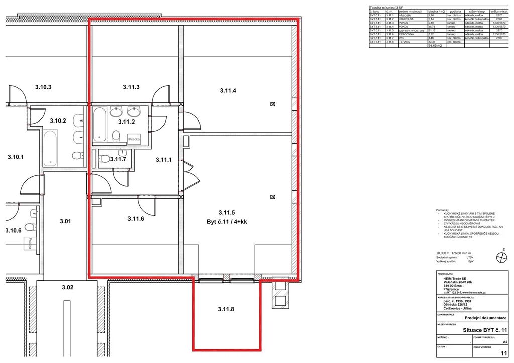 Nabízíme Vám podkrovní byt 4+kk, 97,8 m² s terasou 11,8 m² ve zrekonstruované prvorepublikové vile v Čelákovicích. Byt se nachází ve 3. nadzemním podlaží. Ze vstupní chodby se vstupuje do všech místností, tj. do obývacího pokoje, který dává prostor pro promyšlené zařízení interiéru, propojující kuchyňskou část a odpočinkovou zónou a zároveň navazující na terasu orientovanou na jih, dále do ložnice a dvou pokojů, které se nabízejí jako dětské, a pak ještě do prostorné koupelny s vanou, dvěma umyvadly a WC a naposledy do samostatného WC.