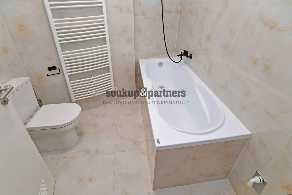 Pronájem 2+kk, 40 m² + sklep, který se nachází ve 4. podlaží projektu Rezidence Podolí, ul. Sinkulova, Praze 2 – Podolí. Apartmán je po kompletní rekonstrukci – nová dřevěná okna, prostorná koupelna s vanou a WC, vinylové podlahy, dlažba, nové rozvody elektřiny, vody a odpadu. V bytě je nová kuchyňská linka včetně vestavěných spotřebičů - horkovzdušná trouba, sklokeramická varná deska, odsavač par, myčka. Vytápění a teplá voda zajištěna vlastní plynovou kotelnou v domě.