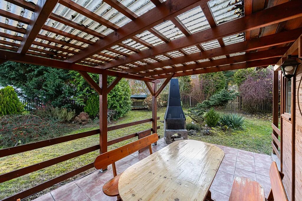 Na pozemku stojí také dřevěná chatka pro přespání, která je skvělá jako hostinský domek, dětský domek nebo prostor pro návštěvy.