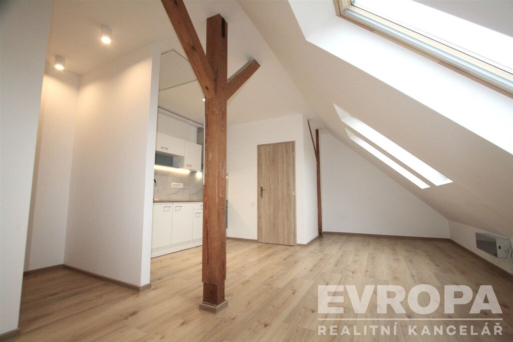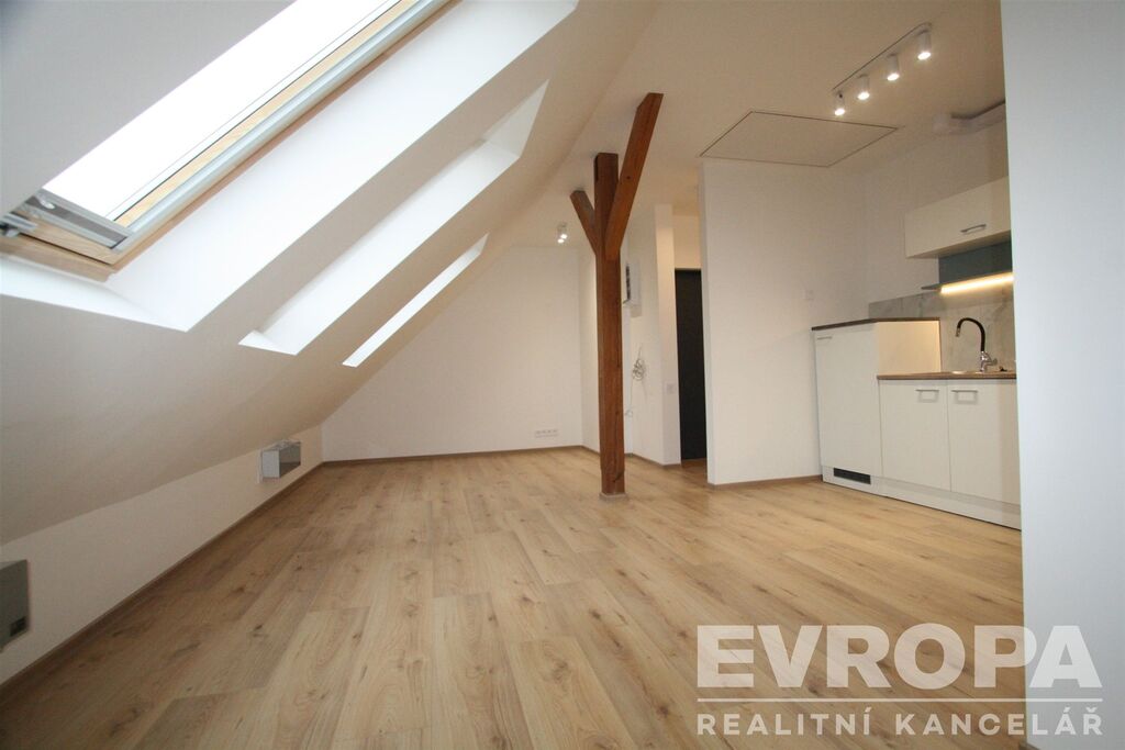 Nabízíme k pronájmu kompletně zrekonstruovaný byt dispozice 1+kk, plocha 33m2, nachází se v 5 podlaží cihlového domu. Byt je velmi atypický, jedná s o rekonstrukci půdního prostoru, vstup bezpečnostními dveřmi do prostorného obývacího prostoru, který je zónově rozdělený do části obývací, jídelní s kuchyňským koutem a prostorem pro spaní. Nová kuchyňská linka je vybavená skl. varnou deskou, el. troubou, menší lednicí s mrazákem a digestoří. Krásná zrekonstruovaná koupelna se sprchovým koutem, toaletou a místem na pračku. Ohřev vody pomocí el. bojleru, topení jsou nové el. přímotopy. Výhodou bytu je vlastní úložný půdní nebytový půdní prostor cca + 8m2 (neuvedeno v celkové výměře), do kterého je přístup po úzkém skládacím žebříku a slouží pro uskladnění sezónních věcí apod. Byt je velmi světlý, nová dřevěná střešní okna přes celou plochu obývacího prostoru zajišťují dostatek denního světla (jsou vybavena roletami), na podlahách plovoucí podlaha, dlažba, nové štuky, elektro a vodoinstalace. Možnost připojení internetu pouze od společnosti UPC (Vodafone). Perfektní spojení do centra Prahy, tramvajová zastávka Strážní, 300 metrů od domu, v místě skvělá občanská vybavenost, obchody, večerka, restaurace. Majitel domu preferuje nájemce bez domácích zvířat, ideálně jednu osobu, s čistým trestním rejstříkem a bez exekucí. K nastěhování volný ihned. Prohlídky po dohodě s makléřem. Z důvodu absence PENB uvidíme třídu G.