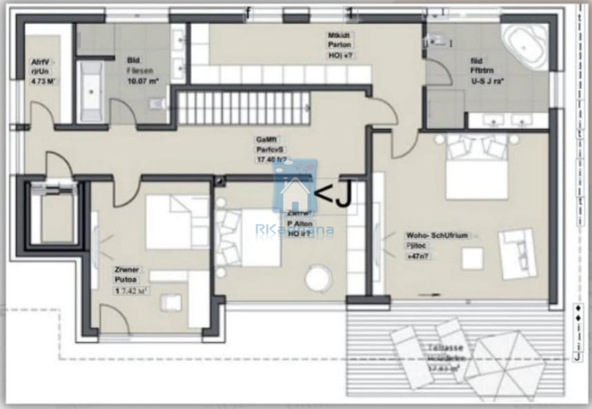 V současné době se nemovitost nachází ve fázi hrubé výstavby, náklady na dokončení cca 1 milion EUR. Alternativně lze dům rozdělit na dva byty o rozloze cca 180 m².