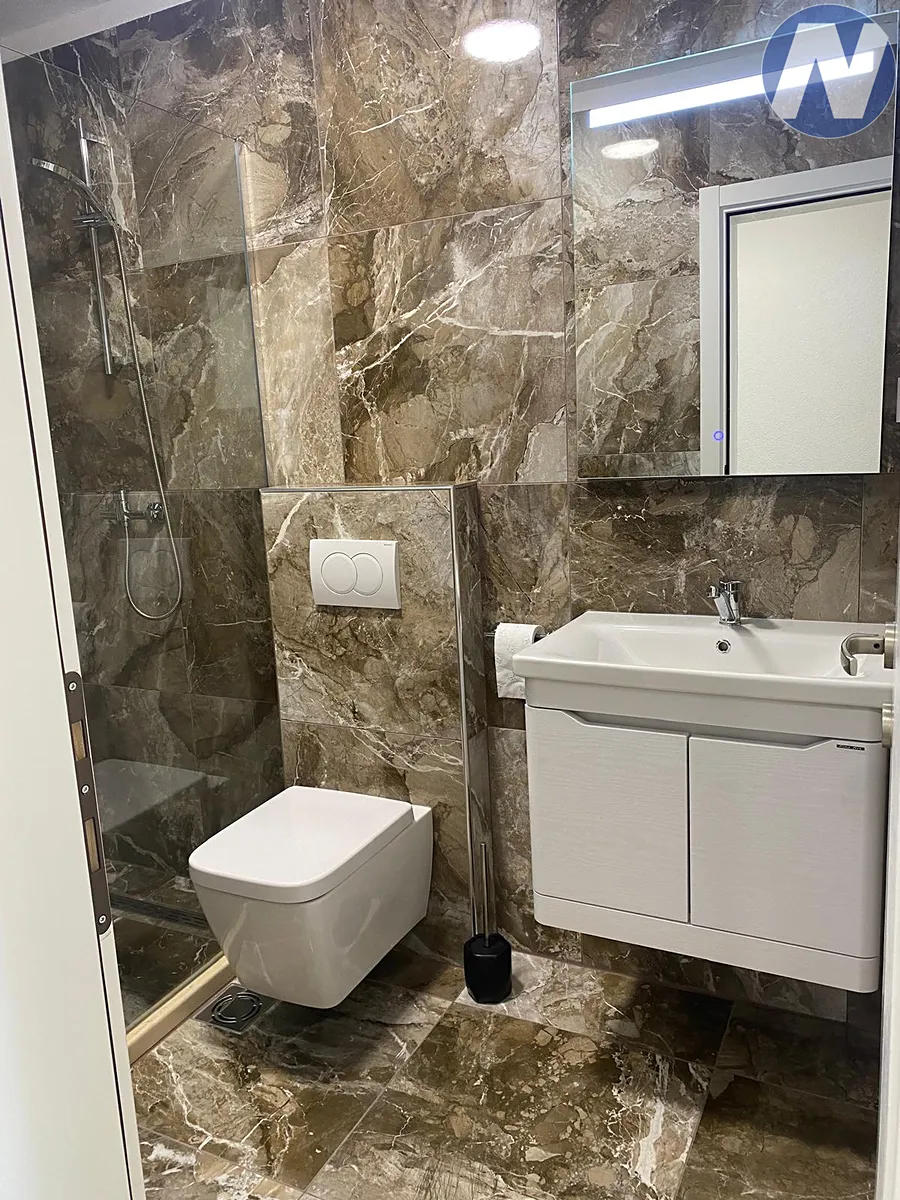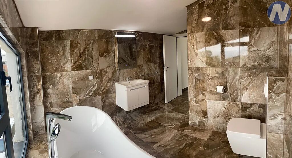Ve druhém patře se nachází obývací pokoj, kuchyň s jídelnou, koupelna s výhledem na moře, prostorná terasa u jídelny, úložný prostor.