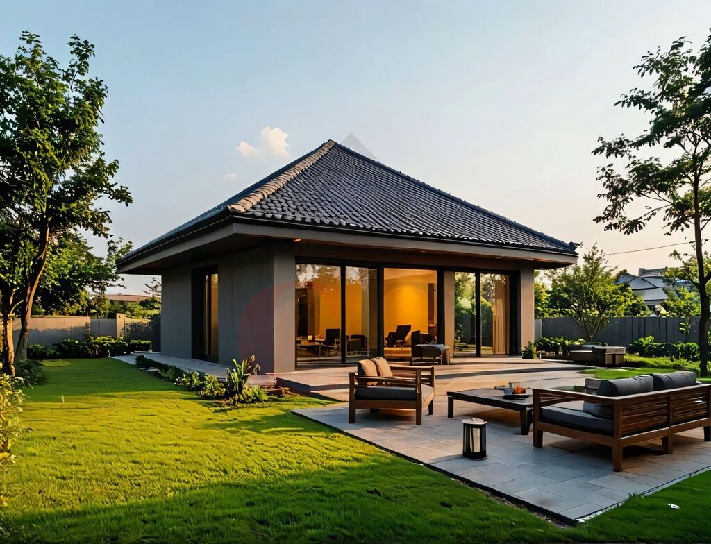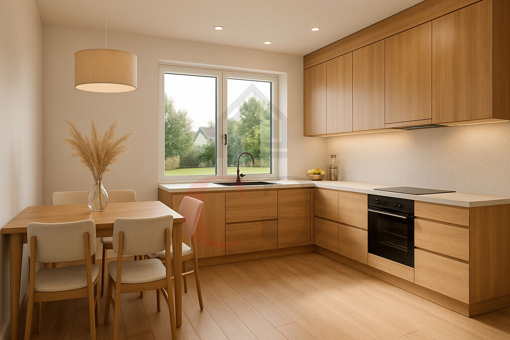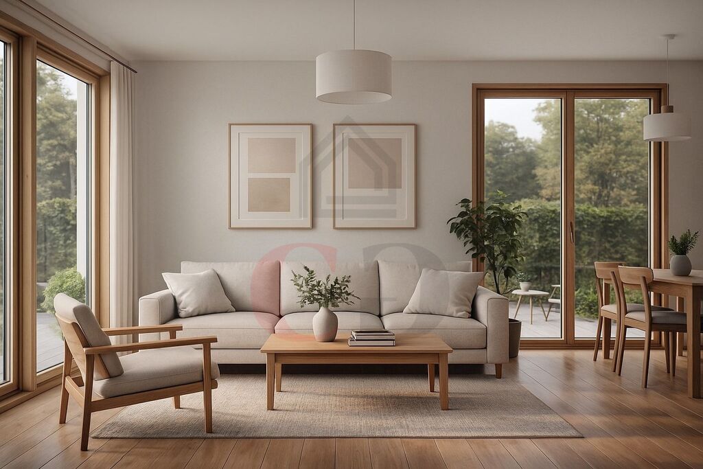 Moderní přízemní dům s kompaktní dispozicí nabízí pohodlné a úsporné bydlení pro jednotlivce, pár nebo menší rodinu.