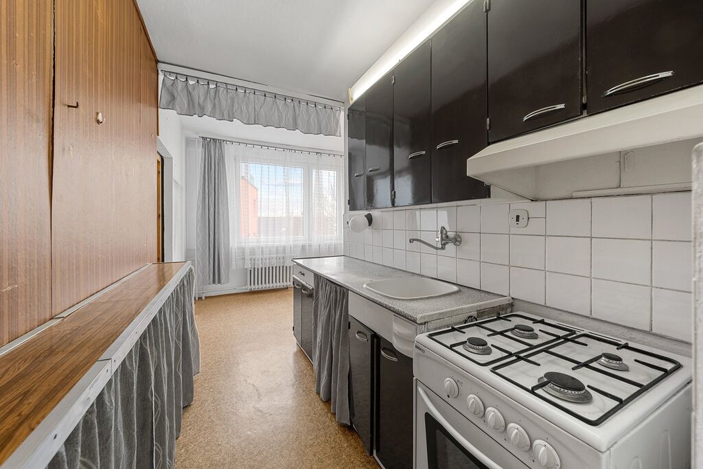 Nabízíme k prodeji světlý a prostorný byt o dispozici 2+1s celkovou výměrou cca 57 m2 v osobním vlastnictví, který se nachází ve 2. patře panelového domu bez výtahu s vlastní plynovou kotelnou, v ulici Rakovnická. Byt je v původním stavu. Pouze před cca rokem při rekonstrukci koupelny byl instalován nový sprchový kout a nové obklady. Velkou výhodou bytu jsou prostorné místnosti a šatna v předsíni, které nabízejí dostatek místa pro pohodlné bydlení. Součástí bytu je také komora v mezipatře a plechová kóje v přízemí. Dům je umístěn v dobře dostupné lokalitě s veškerou občanskou vybaveností, v docházkové vzdálenosti je školka, škola, pošta, Kaufland, Lidl, aquapark.