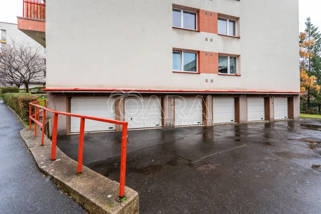 K bytu je možné dokoupit garáž pro jedno auto (přímo v domě) s automatickými vraty. Cena je 1,3 mil. Kč.