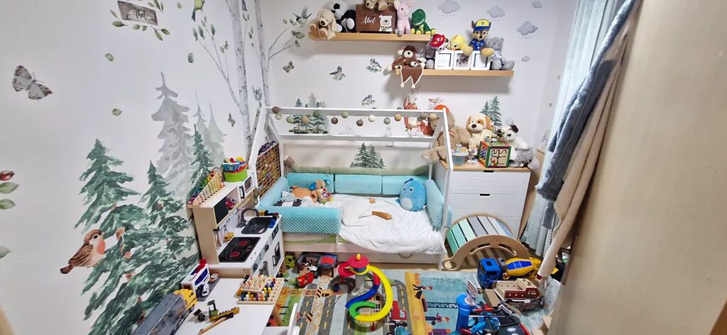V bytě je k dispozici kuchyňská linka včetně spotřebičů – myčka, varná deska, trouba a lednice s mrazákem. Obývací pokoj je vybaven sedací soupravou, televizí a nábytkem. V ložnici se nachází manželská postel. Dětský pokoj bude nevybavený.