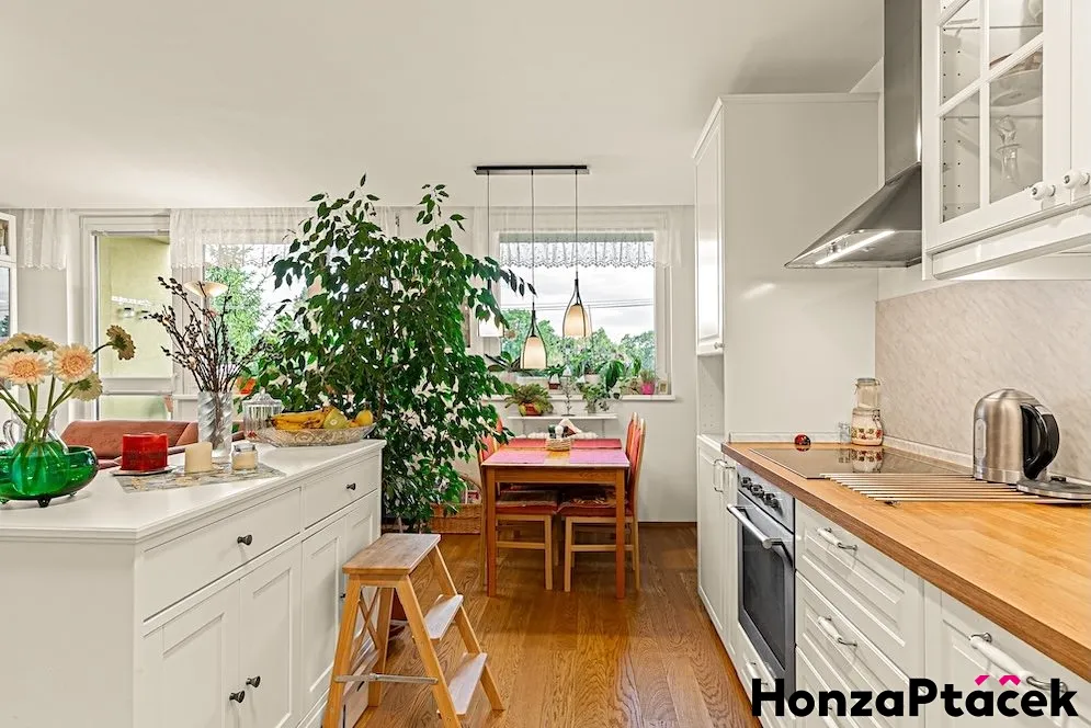 Na prodej je byt o dispozici 3+kk s lodžií, umístěný v tiché ulici na okraji Prahy, v oblíbené části Horní Počernice. Nemovitost prošla důkladnou modernizací – jsou zde dřevěné podlahy, nové interiérové dveře, vestavěné úložné prvky, kompletně vybavená kuchyňská linka a koupelna s podlahovým vytápěním a topným žebříkem. Rekonstrukce zahrnovala také nové příčky a nové rozvody elektřiny.