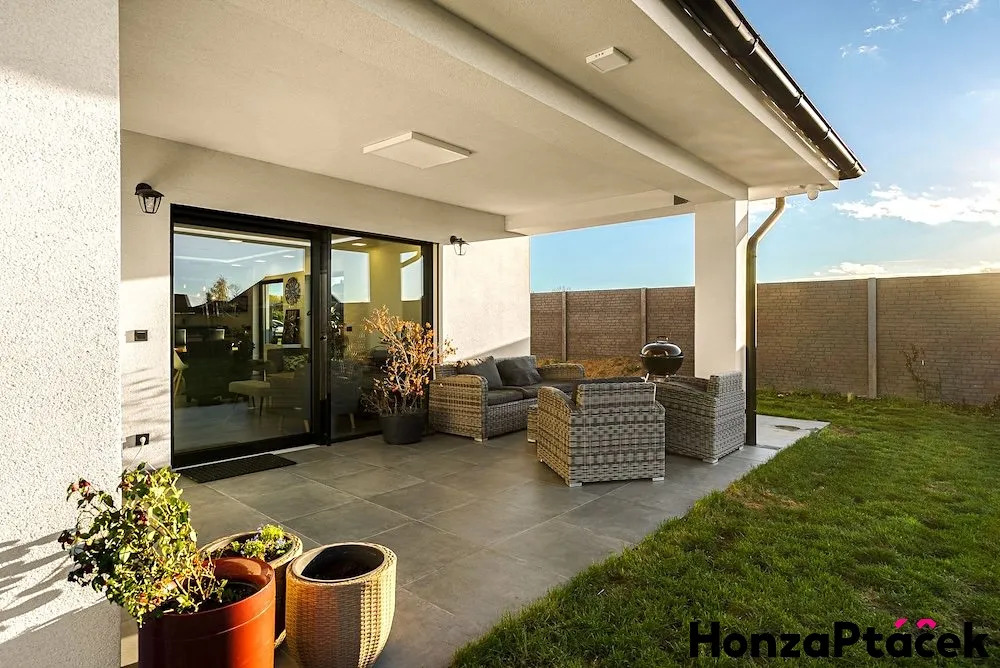 Tato novostavba nevyžaduje žádné další úpravy – dům je připraven k okamžitému nastěhování. Moderní, efektivní a přitom velmi příjemný domov. Přijďte se přesvědčit.