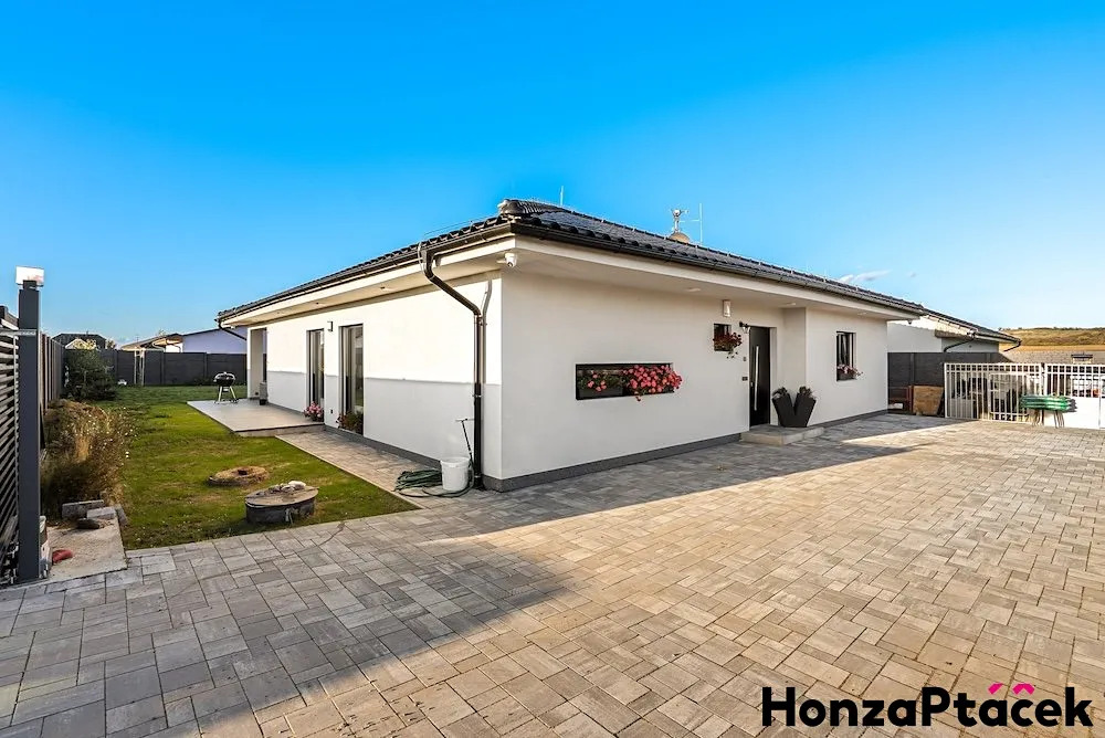 Nabízím vám novostavbu rodinného domu, která splní představy o pohodlném, efektivním a útulném bydlení. Tento přízemní dům o dispozici 4+1 byl právě dokončen a připraven pro nové majitele. Nachází se v klidné lokalitě s výbornou dostupností do Prahy, a díky svému umístění a řešení poskytuje příjemné soukromí.
