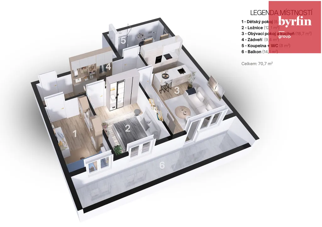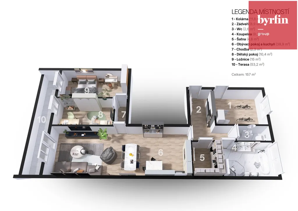 – Dispozice: 8× byt 3+kk, 1× byt 2+kk