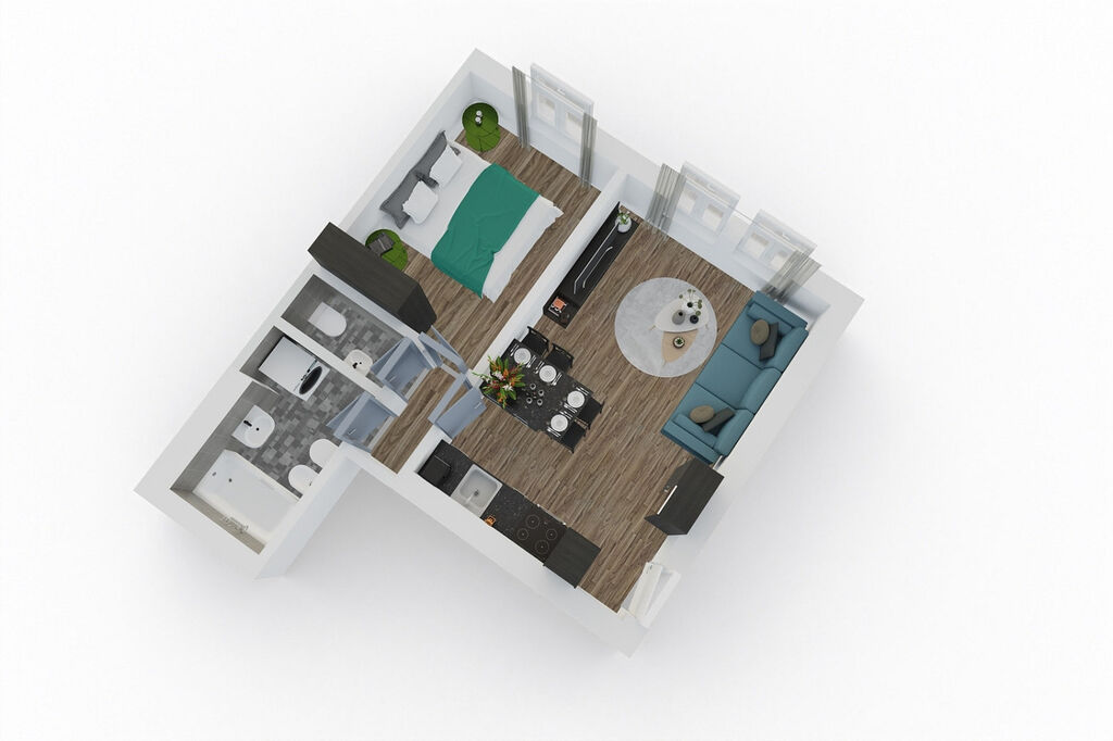 Apartmán disponuje ložnicí s velkou manželskou postelí. Samostatnou kuchyní s obývacím prostorem, kde je pohodlná rozkládací sedačka. Kuchyně je plně vybavená veškerým nádobím, kávovarem, topinkovačem, myčkou nádobí, lednicí s mrazákem, troubou a mikrovlnnou troubou. U barového ostrůvku se pohodlně usadí 4ry osoby. V apartmánu je dostatek úložného prostoru pro vaše osobní věci.