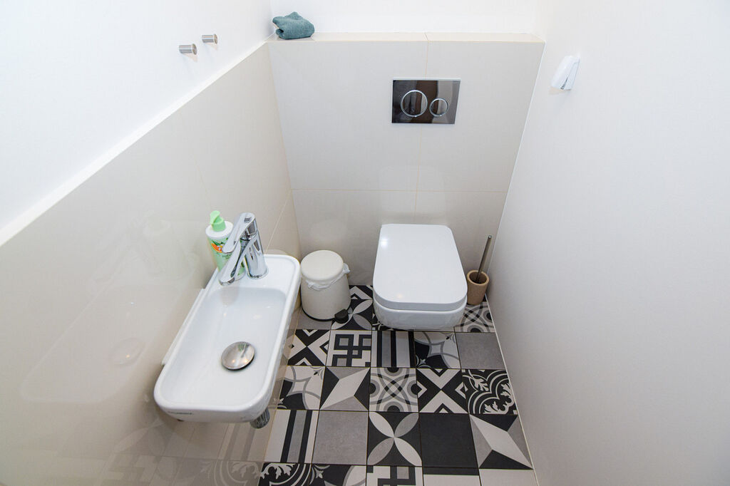 Apartmán má prostornou koupelnu s vanou, toaletou a pračkou. Dále je zde samostatná druhá toaleta.