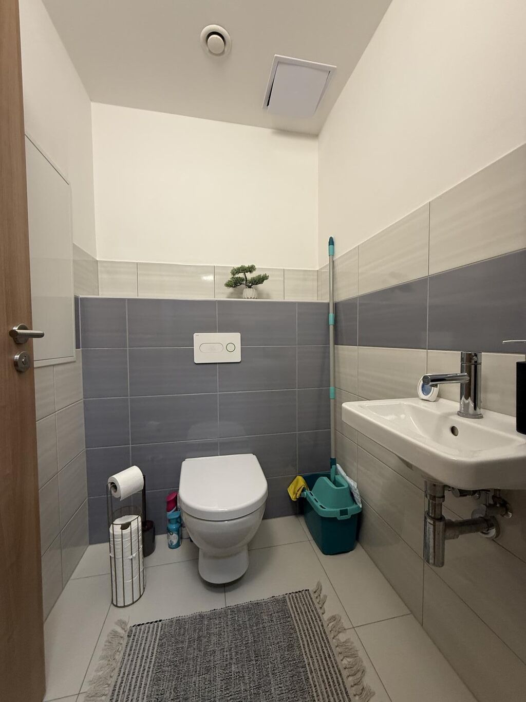 V koupelně se nachází jak sprchový kout, tak i vana. Pračku nutno mít vlastní. Samostatná toaleta.