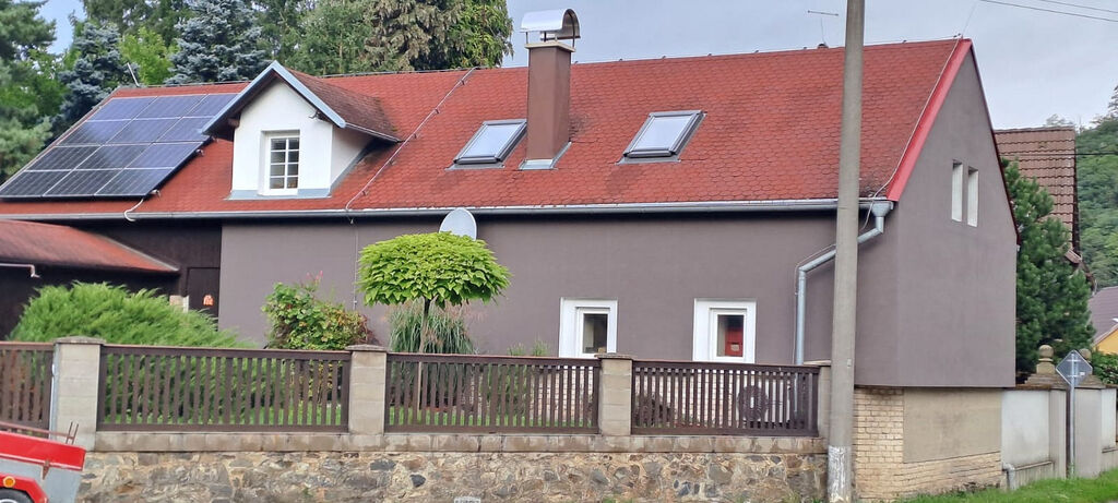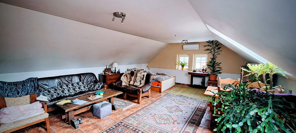 Nabízíme k pronájmu podkrovní byt o velikosti 70 m² v rodinném domě se samostatným vchodem a menší zahrádkou. Dispozici tvoří chodbička, menší kuchyň, koupelna se sprchovým koutem a toaletou a jednu velkou místnost, kterou lze v případě potřeby rozdělit na dvě. Byt je po úpravách - nově zateplený, s okny s trojskly. Vytápění je zajištěno tepelným čerpadlem nebo krbovými kamny na tuhá paliva, ohřev vody bojlerem. V koupelně je podlahové topení, v celém bytě položena dlažba. Voda je ze studny, elektřina řešena podružným elektroměrem (roční spotřeba vychází kolem 8.000,- Kč). Parkování před domem na ulici, parkoviště.