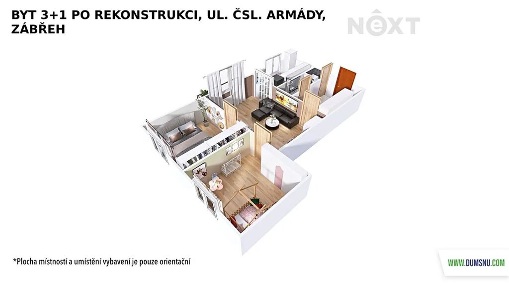K pronájmu nabízíme zrekonstruovaný byt s balkonem o dispozici 3+1, který se nachází v 5. NP revitalizovaného panelového domu bez výtahu.