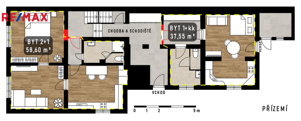Nemovitost vhodná pro investory, kteří hledají stabilní výnos. Objekt je nyní vedený v katastru nemovitostí jako rodinný dům, ale drobnou úpravou jej lze plnohodnotně rozdělit na čtyři samostatné byty. Odhadovaný výnos je zhruba 7 % ročně.