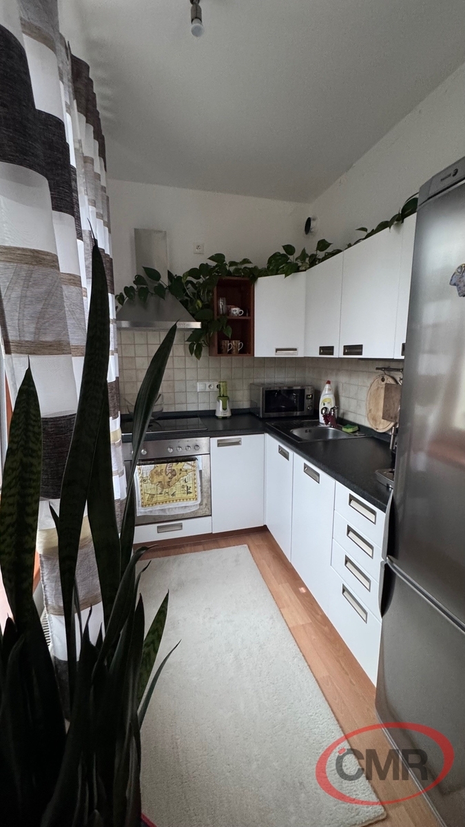 Velmi pěkný, světlý byt 2+kk/L 64 m2 OV ve 2. podlaží cihlového domu situovaného v klidné části vyhledávané lokality P-5, Zbraslav, "Zahradní čtvrť". Byt je ve velmi dobrém, udržovaném stavu, skládá se z prostorného obývací pokoje s kuchyňským koutem, samostatné neprůchozí ložnice, koupelny s vanou, WC samostatně a vstupní chodby. Z obývacího pokoje je vstup na prostornou rohovou lodžii. Kuchyňská linka vybavena sporákem se sklokeramickou deskou a troubou, lednice, myčka, mikrovlnka, kávovar, v koupelně pračka a sušička. Byt se pronajímá včetně veškerého dalšího vybavení. Součástí je pronájmu je garážové parkovací stání a sklep. Dům je situovaný na okraji obce v těsné blízkosti lesa. V místě veškerá občanská vybavenost, ve spodní části Zbraslavi vede cyklostezka podél Vltavy směrem do centra. Další výhodou je dobrá dopravní dostupnost busem cca 20 min na Smíchov. Byt je volný dle dohody. Vřele doporučuji prohlídku.