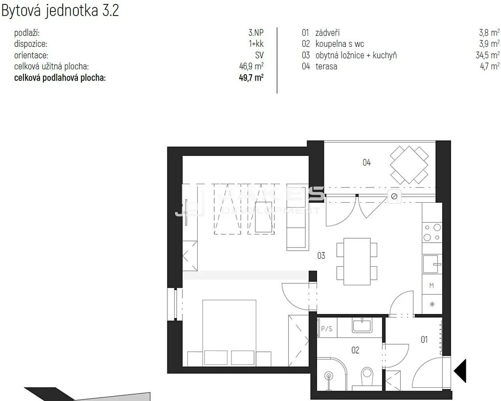 Byt je navržen s důrazem na moderní standardy bydlení a komfort: