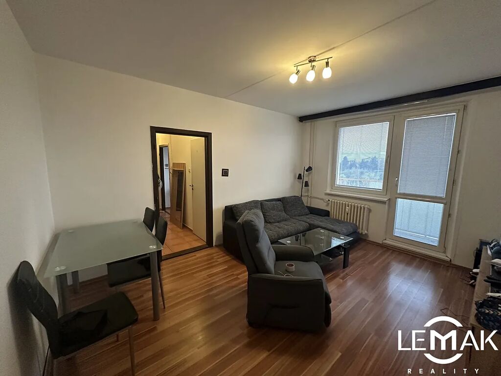 Byt se skládá z prostorné chodby s vestavěnou skříní, ze které se dostaneme do ložnice, dále do kuchyně s jídelnou a elektrickým sporákem. V bytě nalezneme koupelnu s rohovou vanou a WC, a také obývací pokoj se vstupem na lodžii. Velkou výhodou je samostatná komora v bytě, kterou lze využít jako šatnu. K bytu náleží lodžie (3 m²) a sklep (1,6 m²) v suterénu domu. V bytě je zavedena elektrická energie i rychlé internetové připojení, plyn v bytě není.