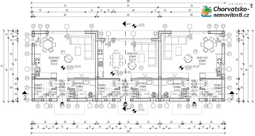 Chorvatsko-Nemovitosti.cz nabízí nové domy v řadě s bazénem a zahradou na prodej v Mandre na ostrově Pag