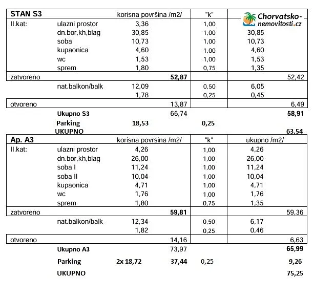 Na prodej byt 2+1 (S3) o celkové ploše 63,54 m2 ve druhém patře novostavby v Novalji