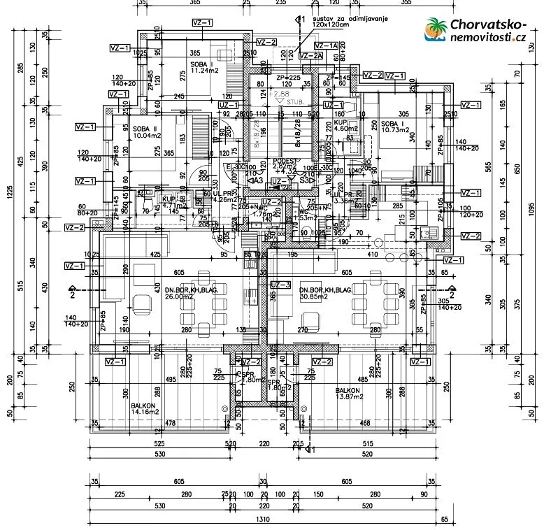 Na prodej třípokojový byt (A3) o celkové ploše 75,25 m2 ve druhém patře novostavby v Novalji