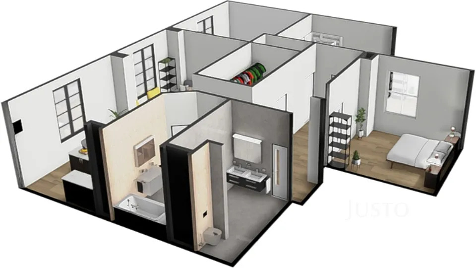 Tři samostatné a prostorné ložnice / pokoje – 16,5 m² + 12,2 m² + 11,4 m². Ideální zónové rozdělení pro maximální soukromí každého člena domácnosti.