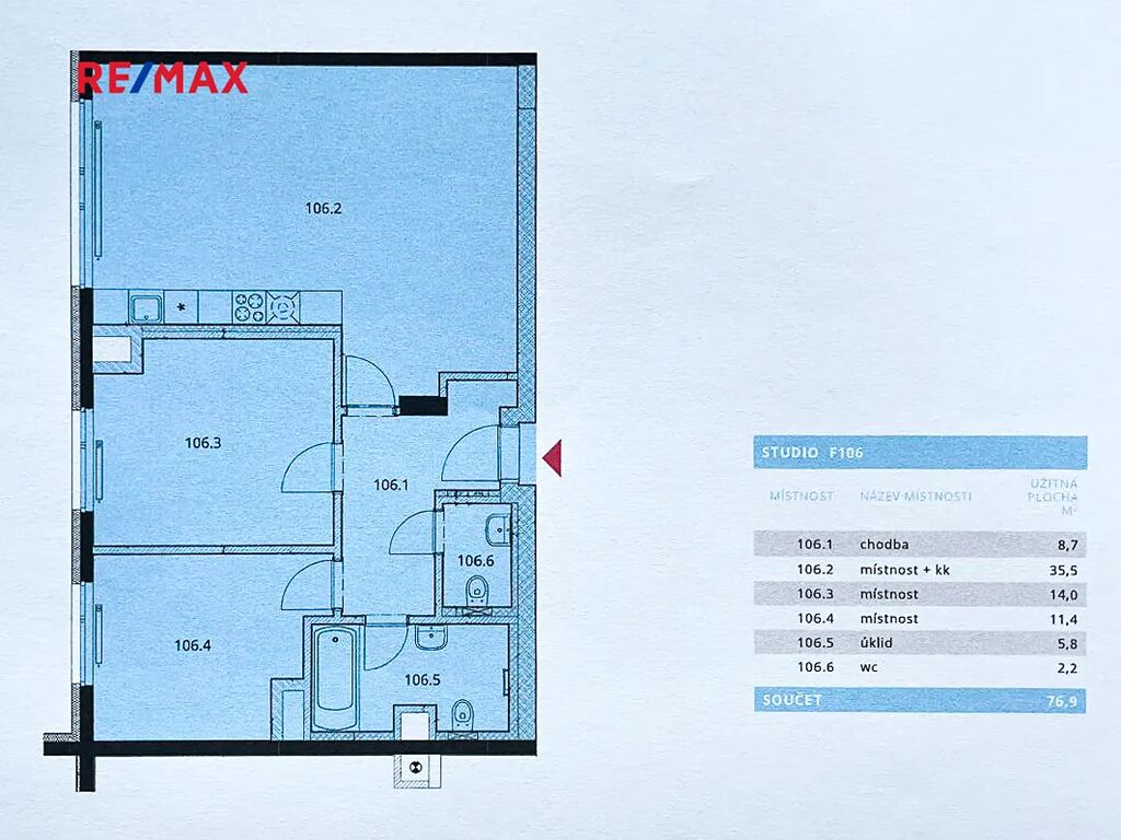 Byt zahrnuje předsíň, velký obývací pokoj s kuchyňským koutem a jídelnou, ložnice, dětský pokoj, koupelna s vanou a toaletou a druhou samostatnou toaletu. Součástí bytu je krásná moderní kuchyňská linka se všemi spotřebiči. Byt je připraven k okamžitému nastěhování bez nutnosti dalších investic. Nádherná podlaha je z masivního dřeva, bezpečnostní dveře ADLO.