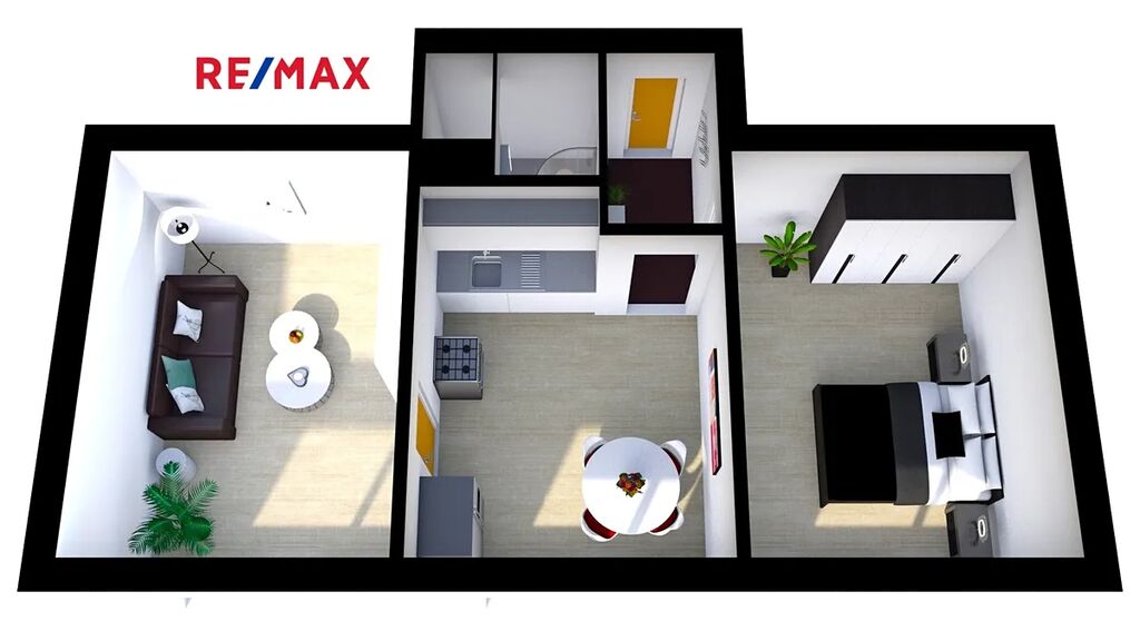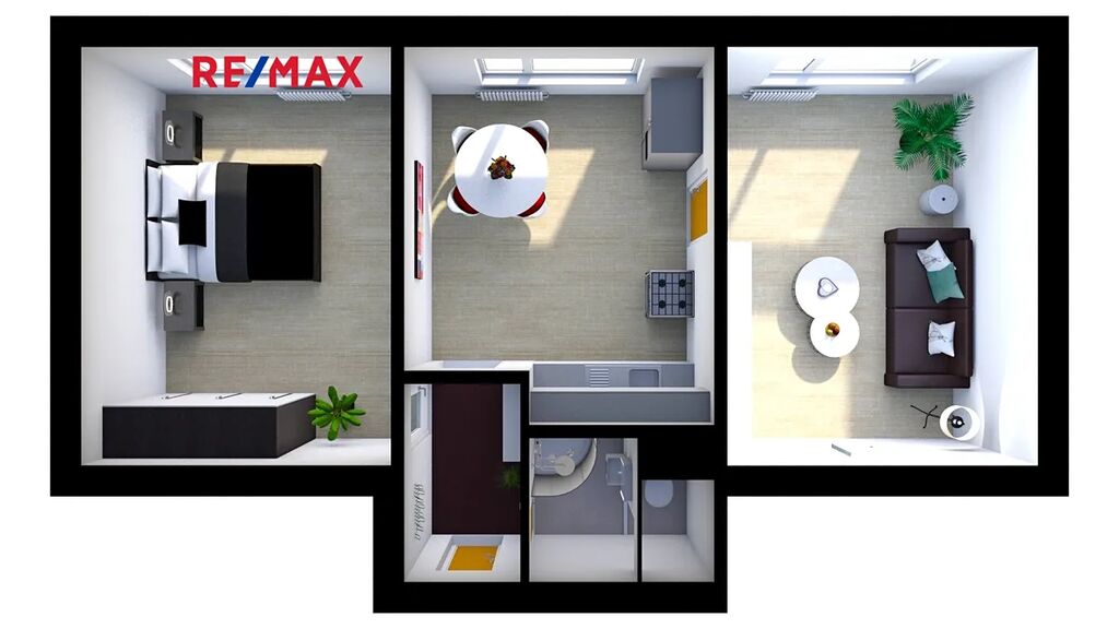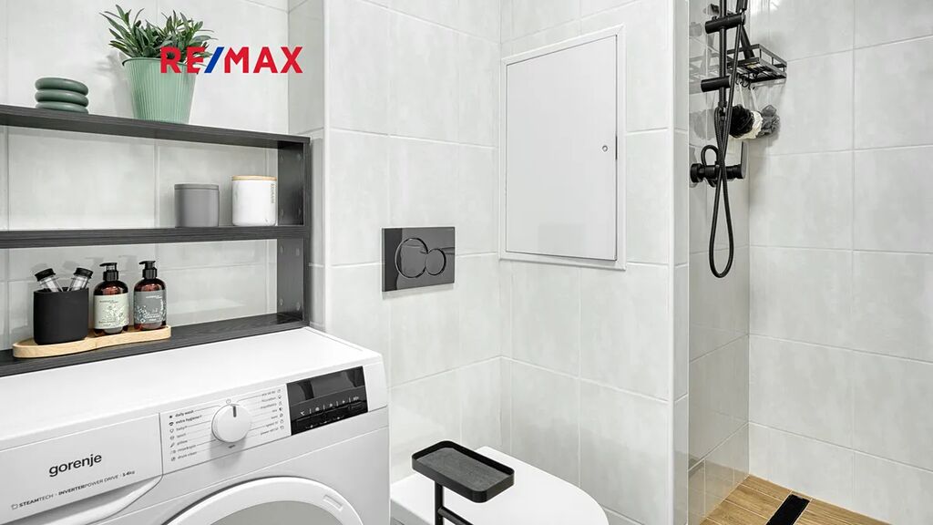 Dispozičně nabízí prostorný obývací pokoj, světlou kuchyň s novou linkou, pohodlnou ložnici a moderní koupelnu se sprchovým koutem a WC, vstupní chodbu.