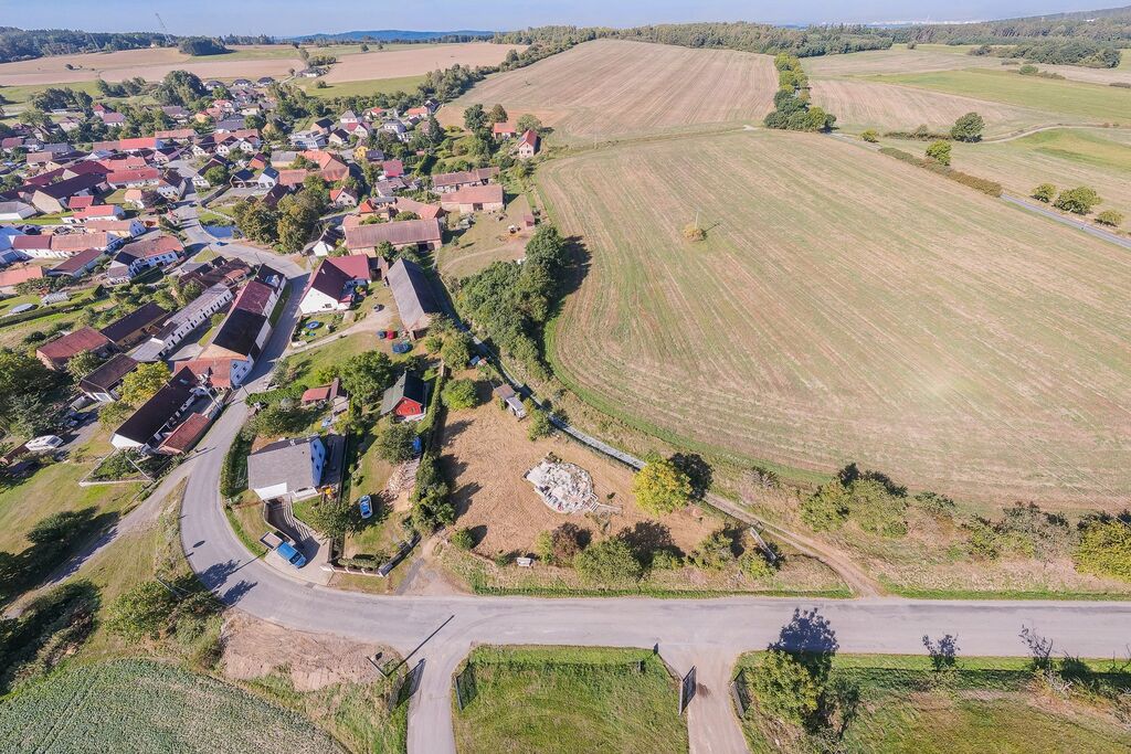 Pozemek na konci obce s jedinečným výhledem nejen na celé Nezbavětice, ale i do širokého okolí.