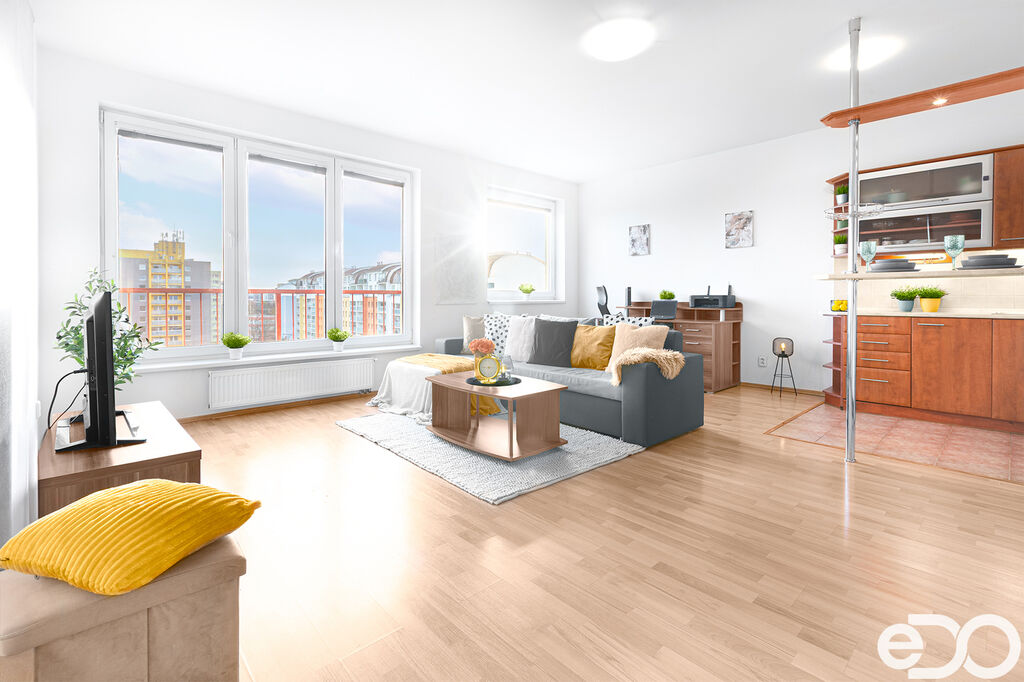 Velmi rád bych Vám v zastoupení majitele nabídl atraktivní bytovou jednotku o dispozici 2+kk a obytné ploše 49 m2, která se nachází v posledním 8. patře nástavby na panelovém domě s výtahem z roku 2006 v příjemné lokalitě Prahy 9 - Letňany, v ulici Místecká. Jednotka je ve velmi dobrém stavu se zděným jádrem v koupelně, elektřina je v mědi, podlahy plovoucí a dlažba, okna plastová s výhledem na jihozápadní světovou stranu. Celou propagaci si můžete projit v klidu domova prostřednictvím virtuální prohlídky, která je součástí propagace.