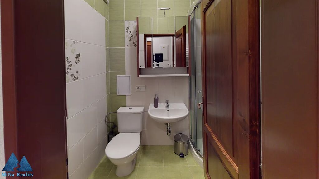 Dispozici apartmánu o celkové výměře 97 m2 tvoří: Vstupní chodba s koupelnou a WC, ložnice a prostorný obývací pokoj s kuchyňským koutem, ze kterého vedou schody do vrchní části bytu. Zde nalezneme technickou místnost, jeden samostatný pokoj a jeden velký pokoj. V horním patře je také druhá koupelna s WC.