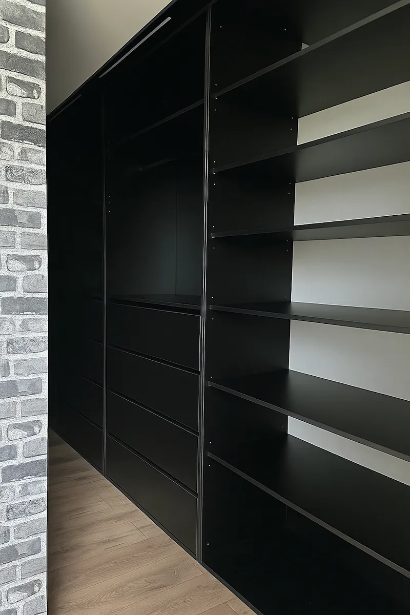 Byt je tmavší a industriální. Navržen pro ty, kteří hledají originální a osobité bydlení s moderní atmosférou, ideální pro rodinu, která preferuje výrazný charakter interiéru.