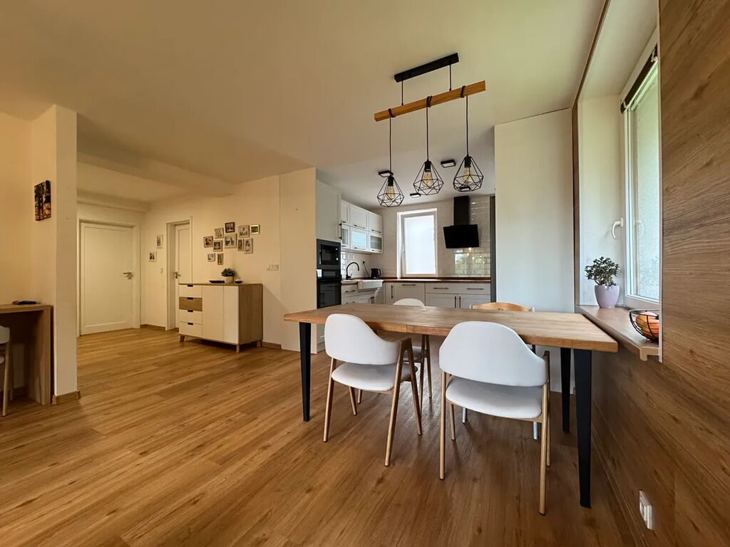 Nabízíme k prodeji samostatnou bytovou jednotku o dispozici 3+kk v prvním nadzemním podlaží, se základní výměrou užitné plochy 100 m², která se nachází v rodinném domě se dvěma samostatnými byty po kompletní rekonstrukci z roku 2021. Dům je situován v klidné lokalitě a představuje ideální volbu pro pohodové bydlení přímo ve městě s veškerou infrastrukturou v pohodlném dosahu.